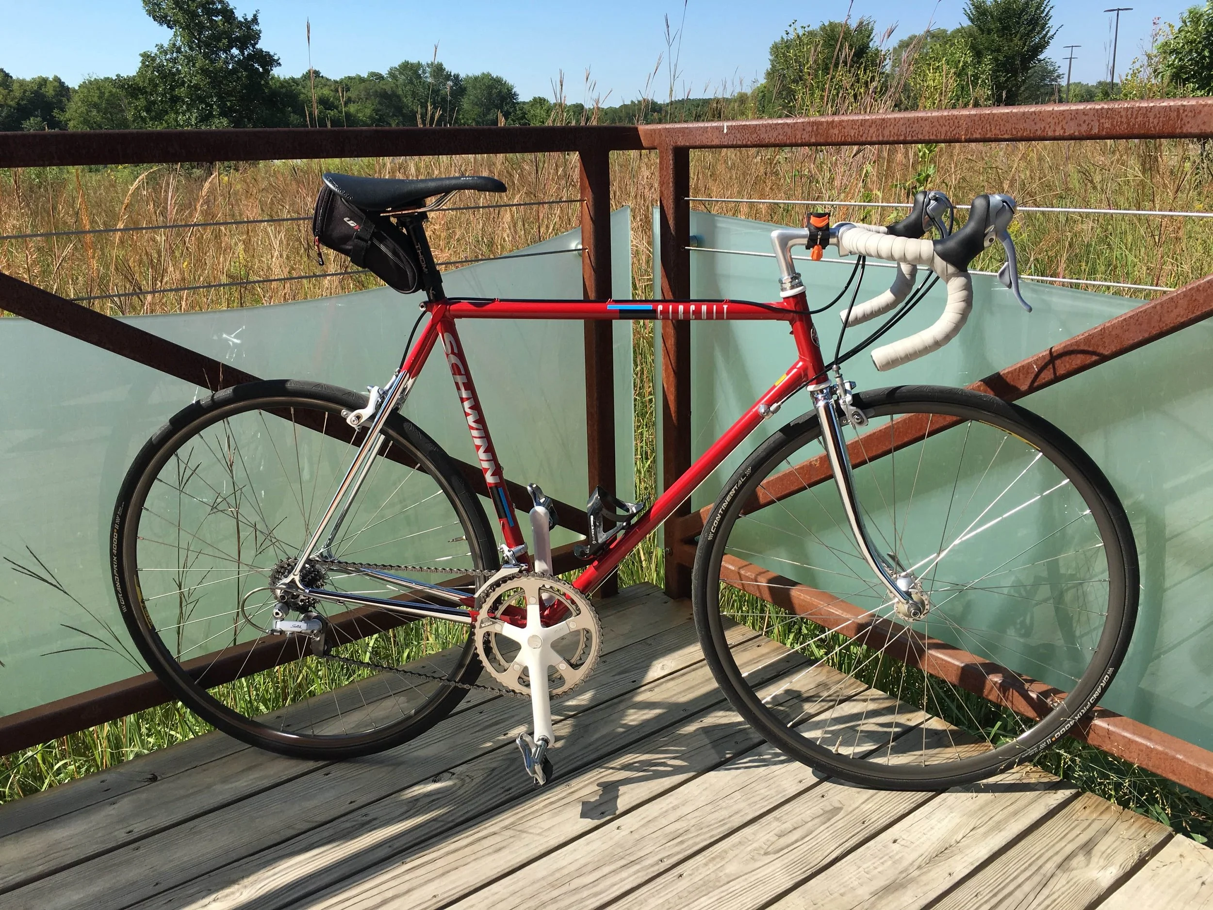 His cycling story stretches back to childhood — learning to ride at six, BMX freedom in elementary school, then a 26-inch hardtail before life took its turns. The spark reignited in 2017 after moving to Illinois, when he fell hard for vintage Columbus steel. A three-hour drive to Wisconsin sealed the deal: a 1989 Schwinn Circuit, pearl white, Shimano Sante groupset. The kind of bike they simply don’t make anymore. That machine didn’t just get him riding again — it made him feel like a kid.